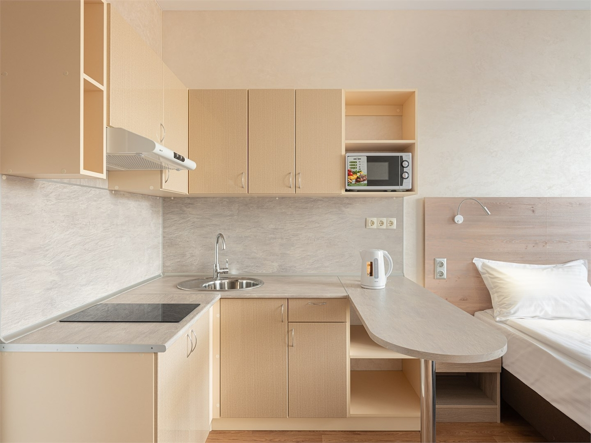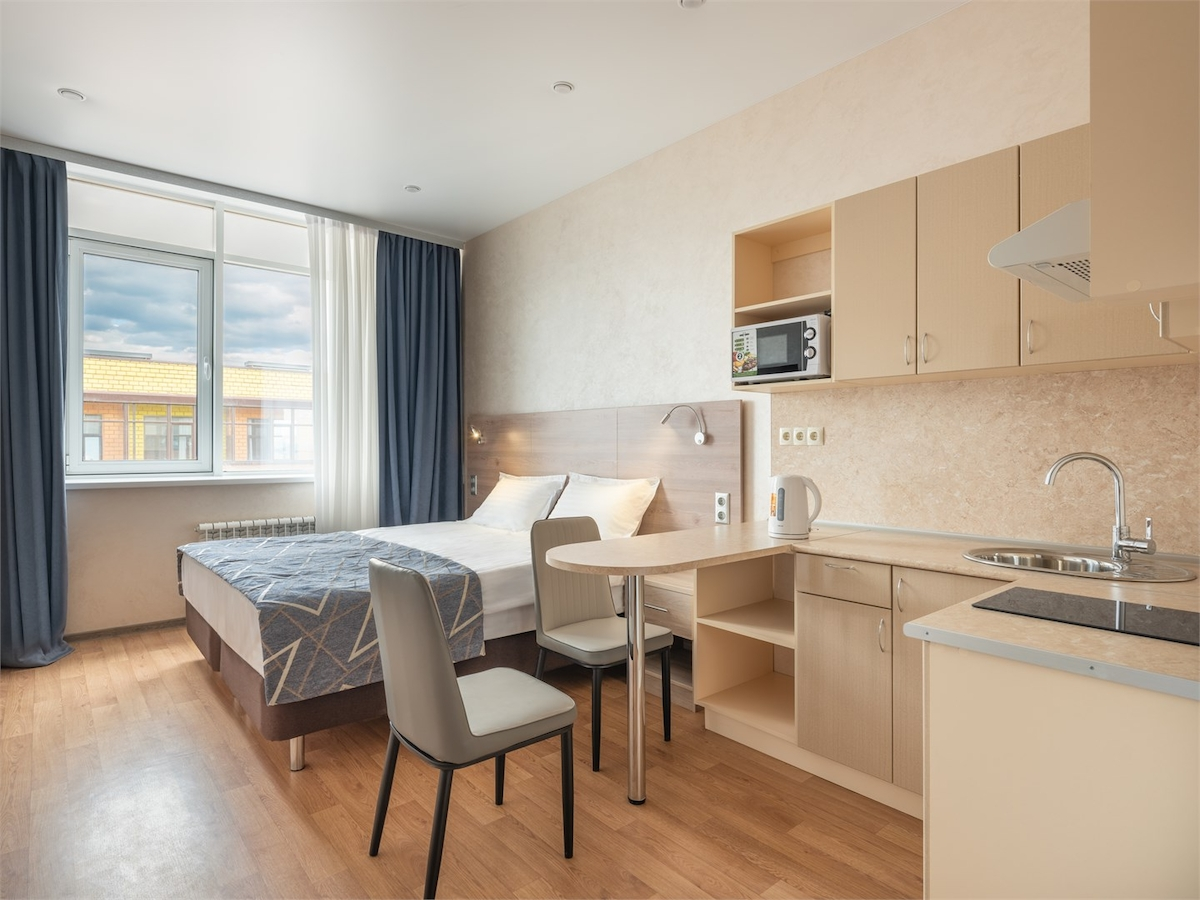 Уютная студия предназначена для комфортного размещения двух гостей. Эти апартаменты сочетают в себе стиль и функциональность, предлагая следующие удобства: